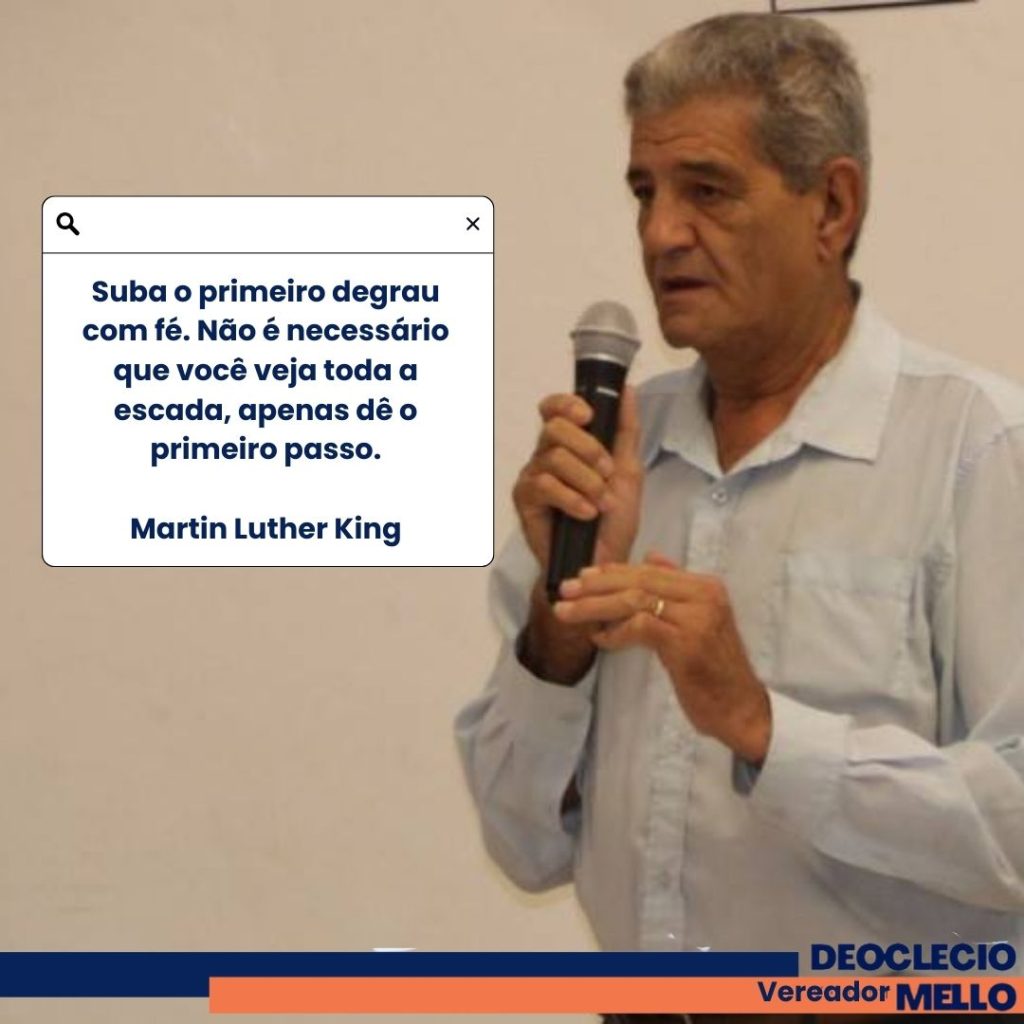 Eu, o vereador Deoclecio Mello, tenho como motivação principal seguir em frente.