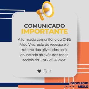 VOLTAMOS Sábado é dia der farmácia comunitária aqui na ONG Vida Viva . Endereço : Av. Jose Brambila 250, esquina com a Rua Laguna. Por