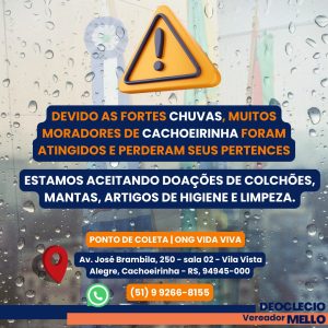 O que Cachoeirinha , precisa ??? Deixe nos comentários … Fiquem atentos as nossas atividades nas redes sociais Instagram: @mello.deoclecio Site: www.deocleciomello.com.br Whats: 51 99266-8155