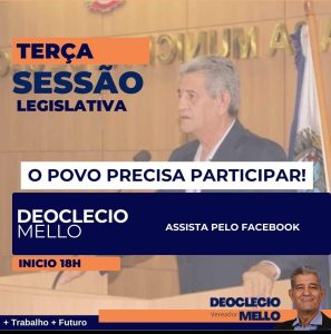 Eu, o vereador Deoclecio Mello, tenho como motivação principal seguir em frente. “Suba o primeiro degrau com fé. Não é necessário que você veja toda